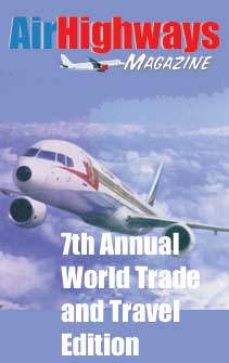 Trade and Travel When we launched Air Highways in 1996, it was followed by a second magazine that focused on Africa Trade and Travel in partnership with the Africa Travel Association, based in New York. At Apec '97 in Vancouver, BC, Canada, our first Asia Pacific Edition was born, and in 2001 we not only featured the Caribbean, we had the pleasure of working with Prime Minister Jennifer Smith of Bermuda and her Tourism Minister, David Allen at a congress in South Africa. That's why Air Highways' 2002 World Trade and Travel Edition will be a winner, with the best of 6 Africa Editions, an Asia Pacific Update, new items on the US Scene, and other exotic destinations. See our feature pages on the Kingdom of Nepal. it's a brief sample of what's to c ome. We've been big on rail travel since 1989, ingredients all together and you've got one grand edition. Advertising closes May 10, 2002. Stay tuned for an update.