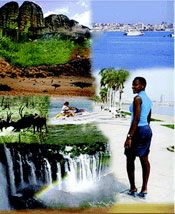 Exploring the Host City: In late October, 2005 the stage was set, as delegates, speakers and dignitaries from Africa, the USA and Canada began arriving in Luanda. Some came in advance and seized the opportunity to discover the host city's scenic and cultural attractions, starting with a leisurely stroll along the 'marginal,' a wide pedestrian seawalk that extends from Le Presidente Meridien hotel, the Port Authority and Tourism Ministry offices for ten or more city blocks. The Portuguese colonial architecture is magnificent, with edifices such as the rose colored Banco de Angola; building cranes on the skyline attest to the rapid development taking place. The Tourism Ministry provided a bus trip around the peninsula, where a miniature Coney Island anchors the far end of the narrow strip, and facing the ocean on both sides of the road is a string of delightful beach front restaurants for every taste, many with lively, upbeat entertainment, discos and casinos. Rui, our tour director, treated us to refreshments at his personal Hernando's hideaway, a laid back bistro called Coconuts, where you could drink, dine or dip and dive in the rolling surf. Other stops included a shopping spree at the Artesanat Market and a 'cooler' at Jango Veleiro. An evening cocktail party at Le Presidente Meridien gave visitors a chance to rub elbows with their host country colleagues. TravelTalk