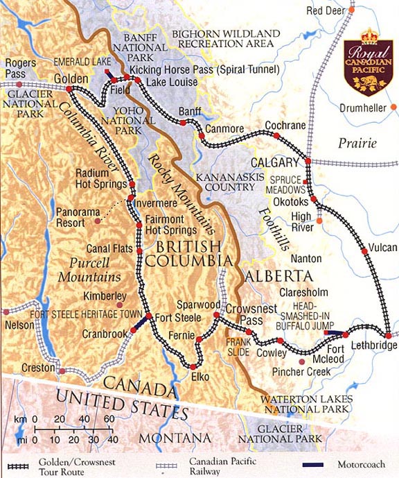 Other Railway Maps: Rail Europe and Via Rail Canada Maps (animated and in sections) Return to the Royal Canadian Pacific Railway page for details on the above tour and others.